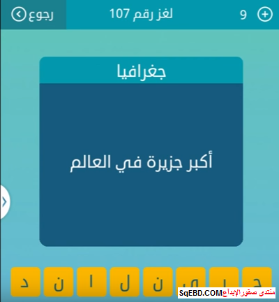 اجابة لغز اكبر جزيرة في العالم مكون من 8 حروف لغز رقم 107 من لعبة كلمات متقاطعة صقور الإبدآع