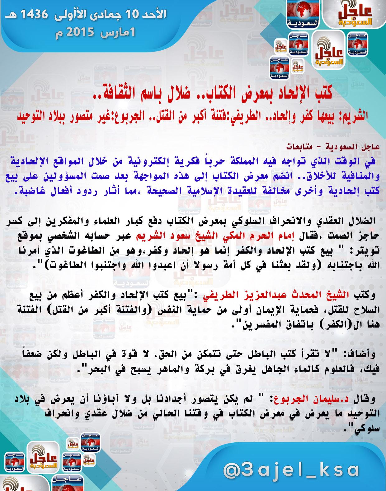 عاجل السعودية On Twitter كتب الإلحاد بمعرض الكتاب ضلال باسم الثقافة الشريم بيعها كفر وإلحاد الطريفي فتنة أكبر من القتل الجربوع ببلاد التوحيد Http T Co Yaivynjdzg