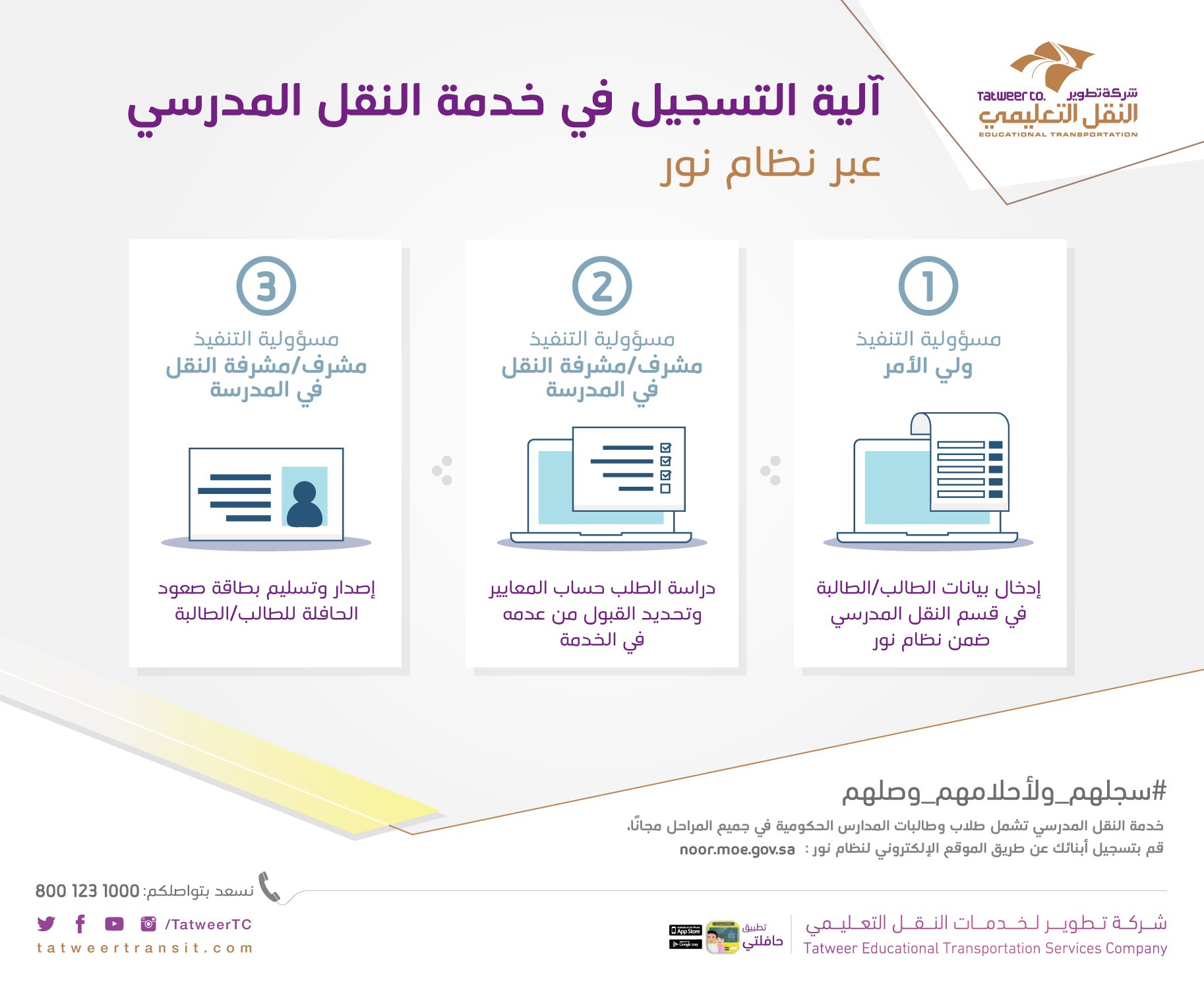 تطوير النقل التعليمي On Twitter بادر بتسجيل أبنائك في خدمة النقل المدرسي المجانية عبر نظام نور Https T Co Llzbvlw9qp سجلهم ولأحلامهم وصلهم