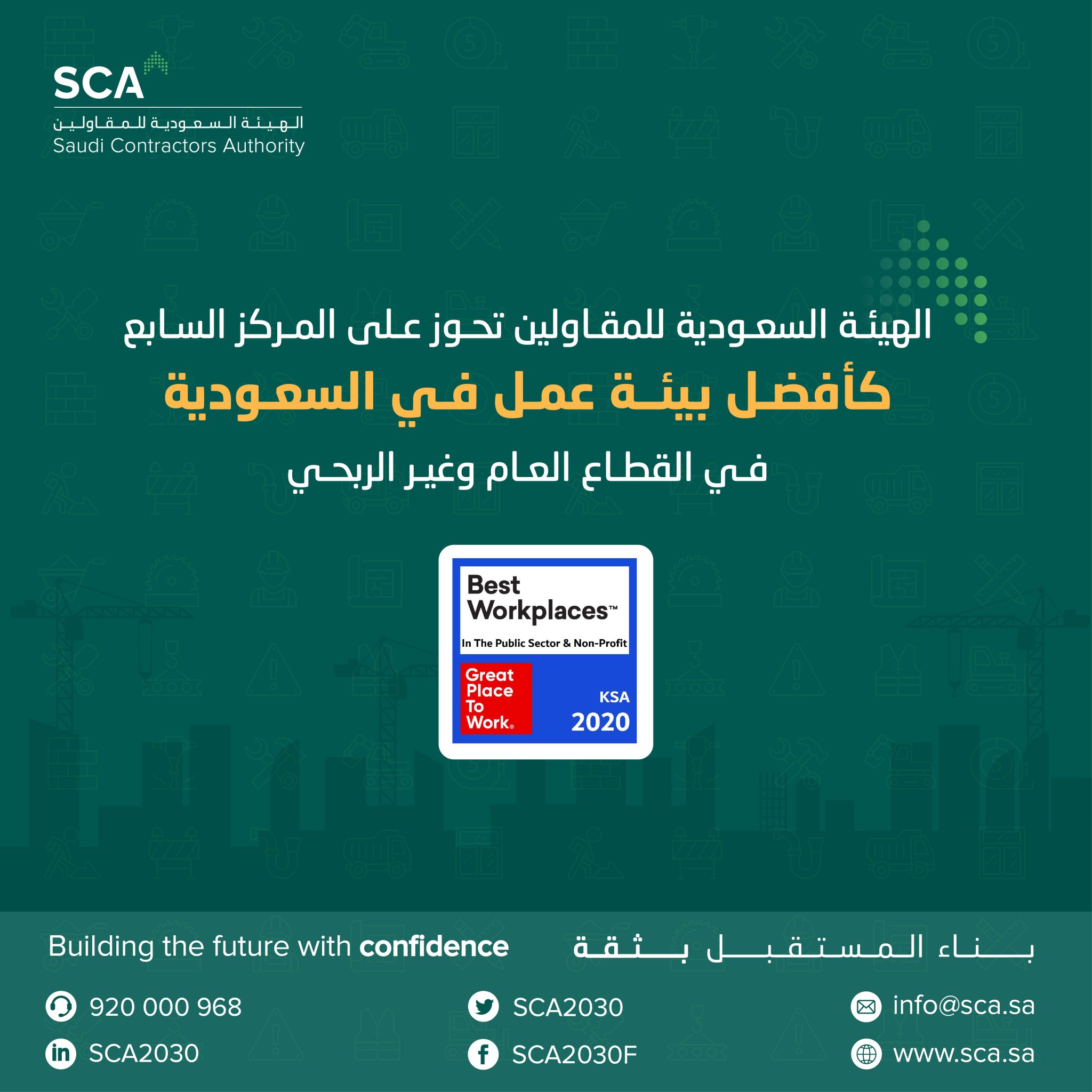 الهيئة السعودية للمقاولين On Twitter الهيئة السعودية للمقاولين تحوز على المركز السابع ضمن تصنيف أفضل بيئة عمل في السعودية في القطاع العام غير الربحي Greatplacetowork2020 Https T Co 4i56kgduso